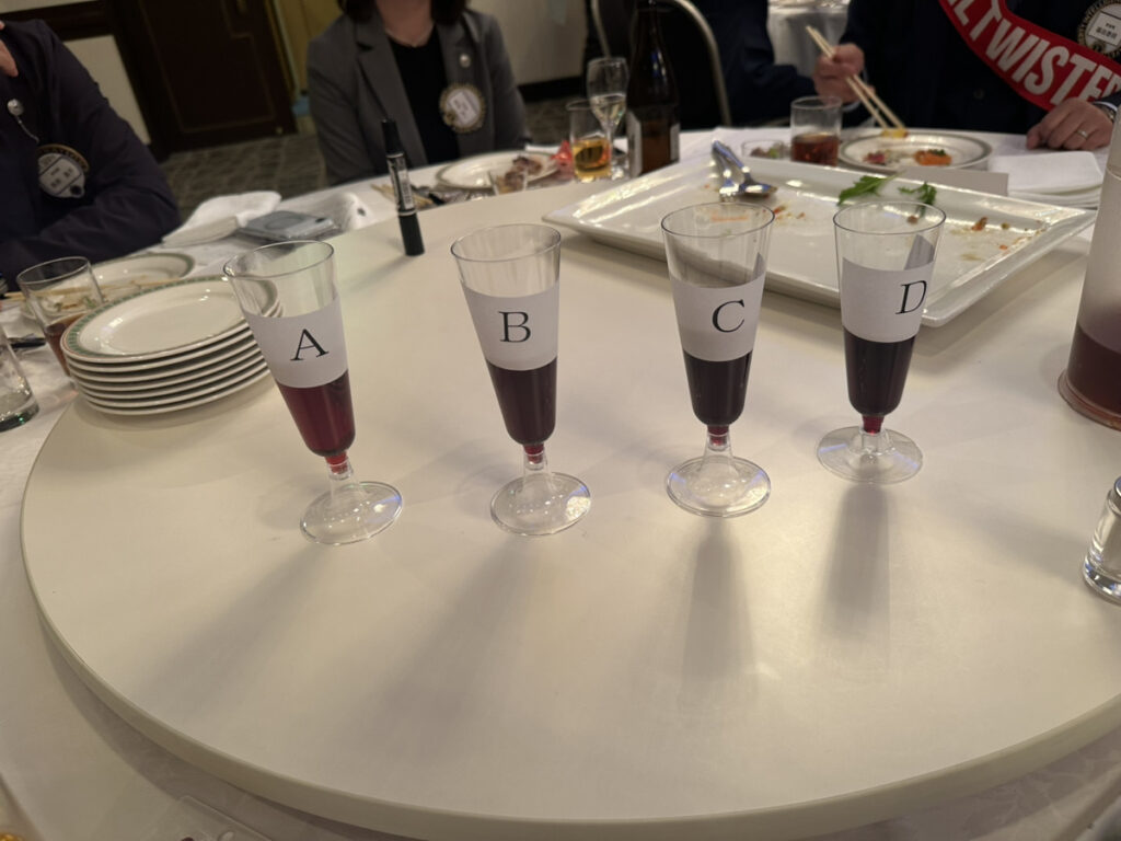 会食中の催しで「利きワイン」がありましたが難しかったようです。
